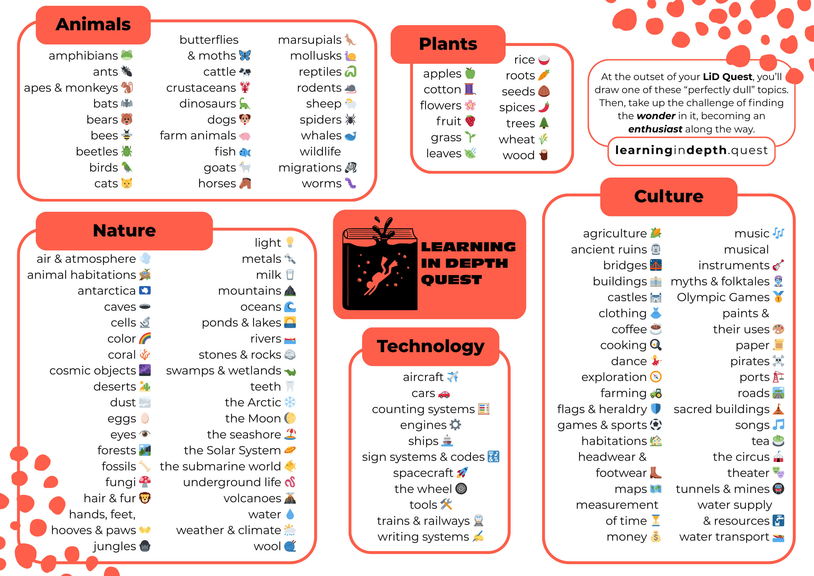 LiD can fit beautifully into an unschooling rhythm. We've found that LiD provides a gentle structure to support curiosity, not constrain it. You can flex the prompts and choose the quests to fit your lifestyle.Q: Is this suitable for families outside the US?